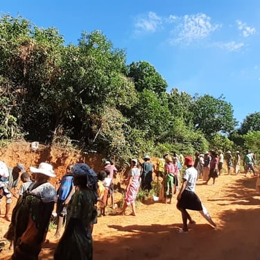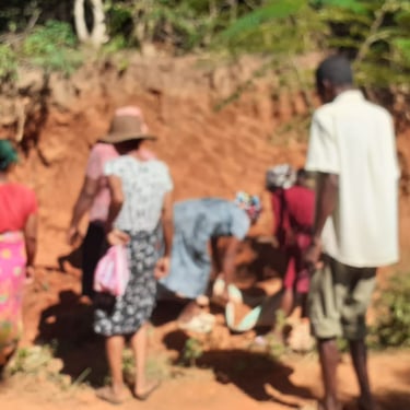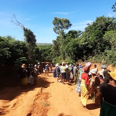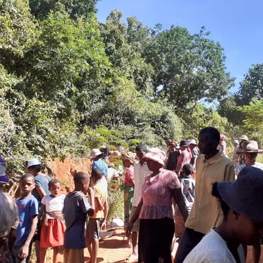 Tous les mardis, l'ensemble des villageois donnent de leur temps pour participer à un chantier communautaire. Ici, il s'agit de planter des plants de vétiver le long du chemin à l'entrée du village, afin de prévenir l'érosion. Par ailleurs, les planches qui serviront à la confection des bancs de l'église ont été livrées depuis Mahajanga (Majunga). Un gros travail de montage va commencer, impliquant également de nombreux villageois.