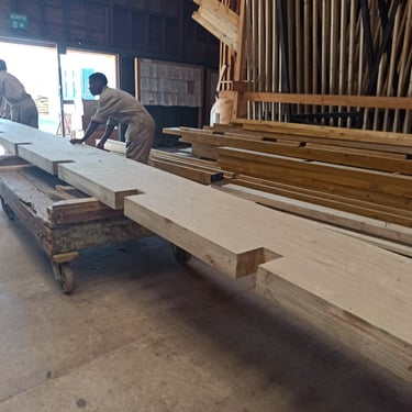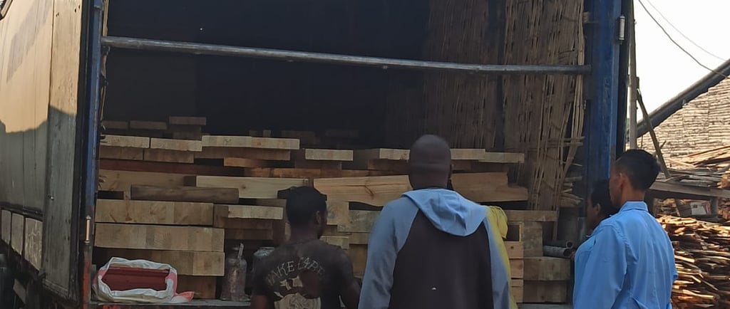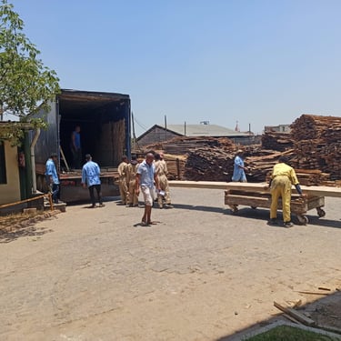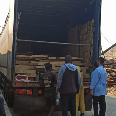 Chargement des pannes et des arbalétriers à l'usine à Antananarivo à la force des bras....