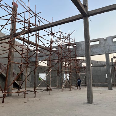 Toute la cargaison est acheminée au Toby. Les échafaudages pour le montage sont prêts....