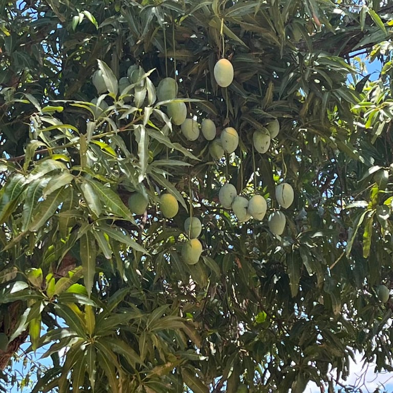 Pendant ce temps, les premiers équipiers arrivés en avance au Toby se régalent de mangues fraîchement cueillies...