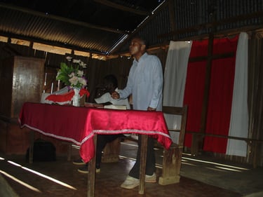 Pictures of the church and the little congregation as it was in 2006. The last photo shows Mr Rajaofera, current VP of the committee with Pastor Daniel Rajakoba. (click to enlarge)